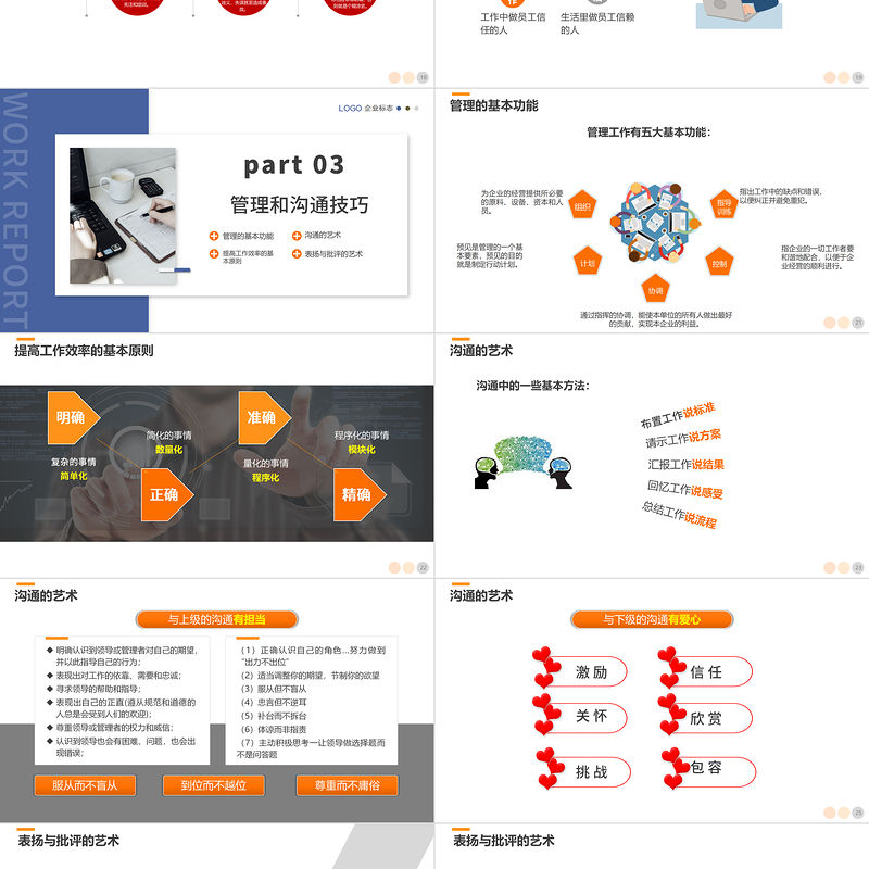 WORK REPORTpart 03管理和溝通技巧管理的基本功能提高工作效率的基本原則溝通的藝術(shù)表?yè)P(yáng)與批評(píng)的藝術(shù)