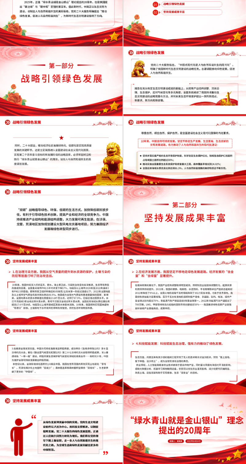 工圖網提供“綠水青山就是金山銀山”理念提出的20周年PPT黨的生態文明建設主題課件供會員免費下載。更多精彩黨課PPT素材,盡在工圖網。
