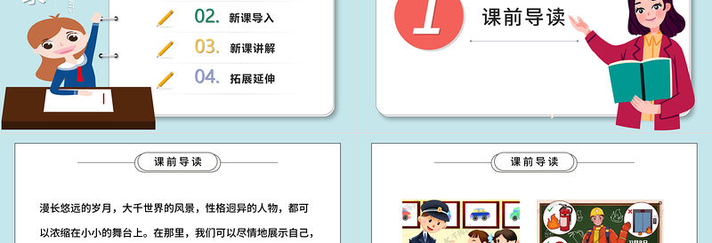 漫長悠遠的歲月,大千世界的風景,性格迥異的人物,都可以濃縮在小小的舞臺上。在那里,我們可以盡情地展示自己,重現課文中精彩的情節和難忘的對話。課前導讀