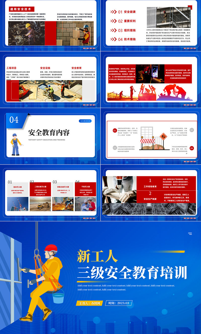 工圖網(wǎng)提供2023新工人三級安全教育培訓(xùn)PPT商務(wù)風(fēng)新員工安全教育培訓(xùn)課件模板供會員免費下載。更多精彩黨課PPT素材,盡在工圖網(wǎng)。