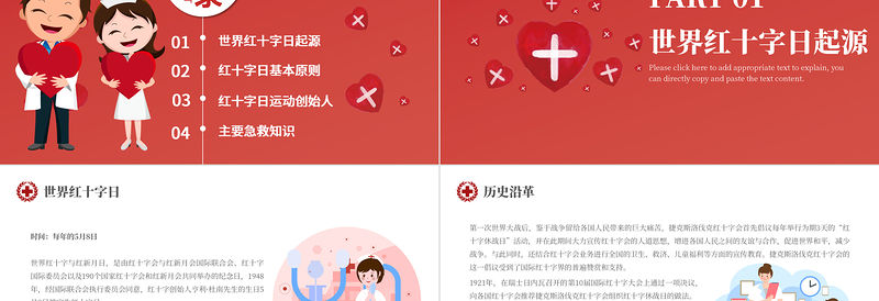 PART 01世界紅十字日起源Please click here to add appropriate text to explain, you can directly copy and paste the text content.