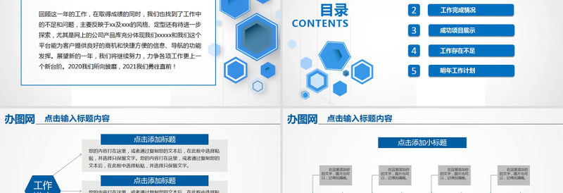 前 言回顧這一年的工作,在取得成績的同時(shí),我們也找到了工作中的不足和問題,主要反映于xx及xxx的風(fēng)格、定型還有待進(jìn)一步探索,尤其是網(wǎng)上的公司產(chǎn)品庫充分體現(xiàn)我們xxxxx和我們這個(gè)平臺(tái)能為客戶提供良好的商機(jī)和快捷方便的信息、導(dǎo)航的功能發(fā)揮。展望新的一年,我們將繼續(xù)努力,力爭(zhēng)各項(xiàng)工作更上一個(gè)新臺(tái)階。2020我們所向披靡,2021我們勇往直前!