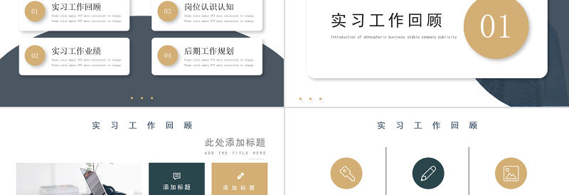 CONTENTS01實(shí)習(xí)工作回顧Theme color makes PPT more convenient to change. Theme color makes PPT more convenient to change.03崗位認(rèn)識(shí)認(rèn)知Theme color makes PPT more convenient to change. Theme color makes PPT more convenient to change.02實(shí)習(xí)工作業(yè)績(jī)Theme color makes PPT more convenient to change. Theme color makes PPT more convenient to change.04后期工作規(guī)劃Theme color makes PPT more convenient to change. Theme color makes PPT more convenient to change.