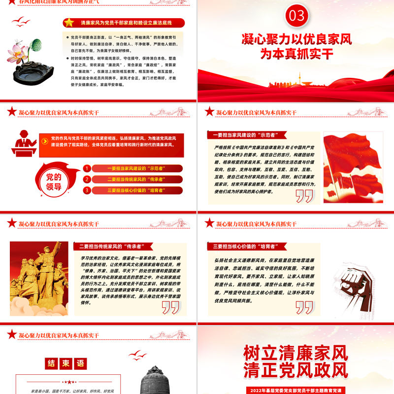 2022廉潔文化PPT紅色簡潔以清廉家風涵養清風正氣黨支部黨委黨組織廉政教育黨建授課輔導黨課課件包含