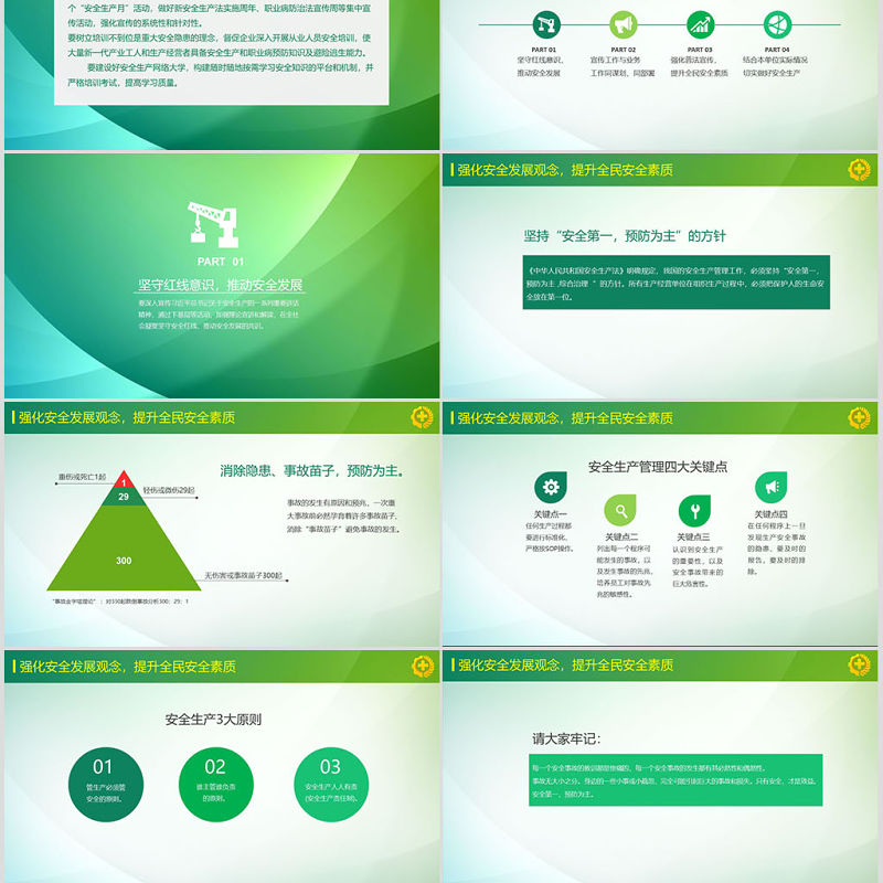 目錄 / CONTENTSPART 01PART 02PART 03PART 04堅守紅線意識,推動安全發展宣傳工作與業務工作同謀劃、同部署強化普法宣傳,提升全民安全素質結合本單位實際情況 切實做好安全生產