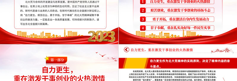 傳承弘揚北大荒精神PPT紅色精美新時代推動東北全面振興新征程上繼續發揚北大荒精神黨課下載