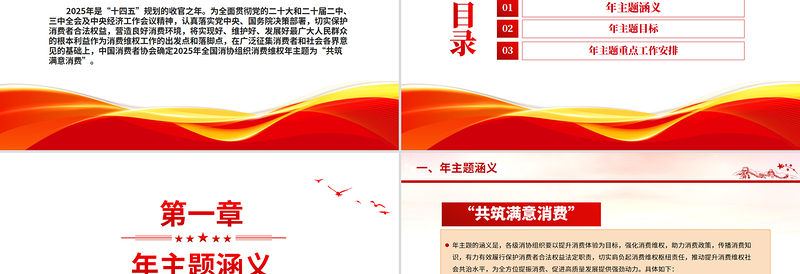二、年主題目標一是推進社會共治,參與主體更具具廣度??钙鹣M維權樞紐責任,凝聚社會各方力量,以提升老百姓消費體驗為目標,推動建立消費維權社會共治格局。深入了解消費者需求,全方位加強消費者保護,持續(xù)優(yōu)化消費環(huán)境,讓消費者敢消費、愿消費。1二是完善法律法規(guī),制度保障更具力度。以《消費者權益保護法實施條例》宣貫為契機,針對消費新業(yè)態(tài)、新場景中出現(xiàn)的新問題,積極開展消費維權理論與實務研究,提出高質量的立法或監(jiān)管建議,推動完善相關法律法規(guī),為保護消費者合法權益提供堅實的法治保障。2