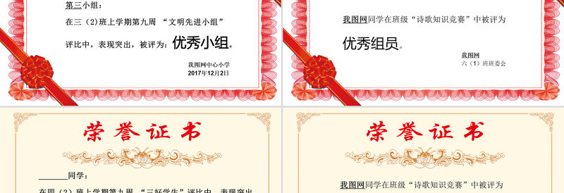 榮譽證書第三小組:在三(2)班上學期第九周 “文明先進小組”評比中,表現突出,被評為:優秀小組。辦圖網中心小學2017年12月2日