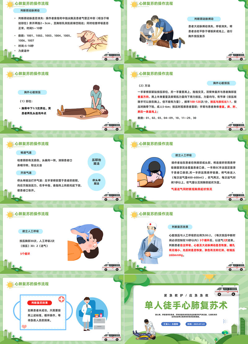 工圖網提供2023單人徒手心肺復蘇術PPT插畫風單人徒手心肺復蘇應急急救知識課件模板供會員免費下載。更多精彩黨課PPT素材,盡在工圖網。