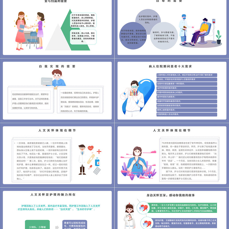 2022人文關懷與優質護理PPT簡約插畫風醫療相關PPT模板下載.pptx