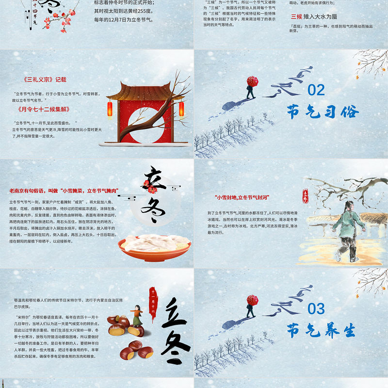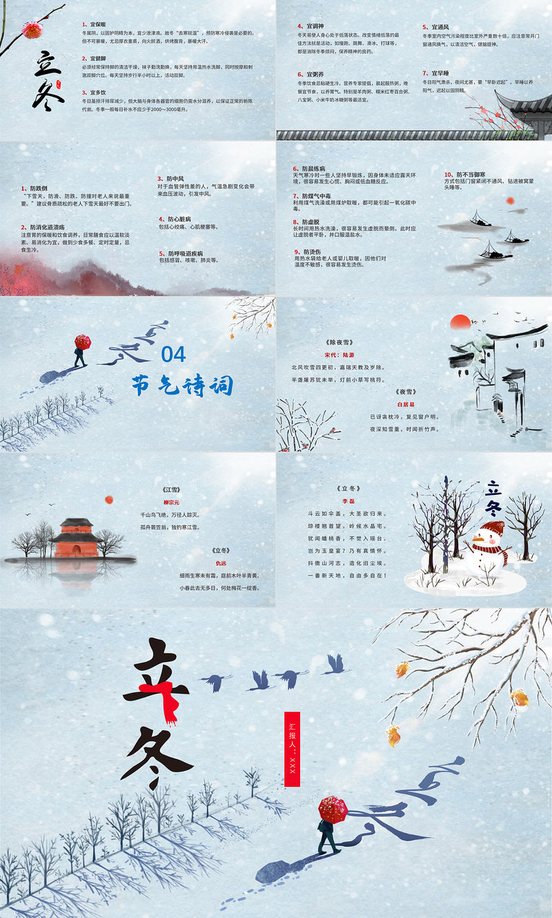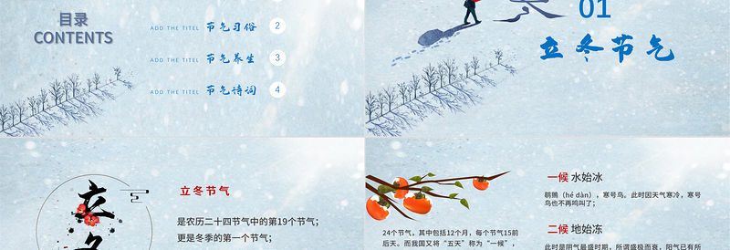 2021立冬PPT白色清冷二十四節氣之立冬節氣民間習俗物候農事傳統文化模板