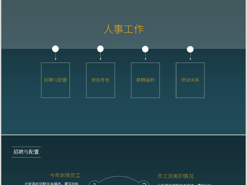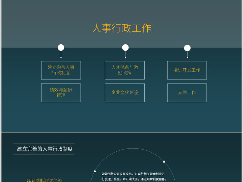 原創藍色完整框架人事行政部工作總結PPT模板-版權可商用