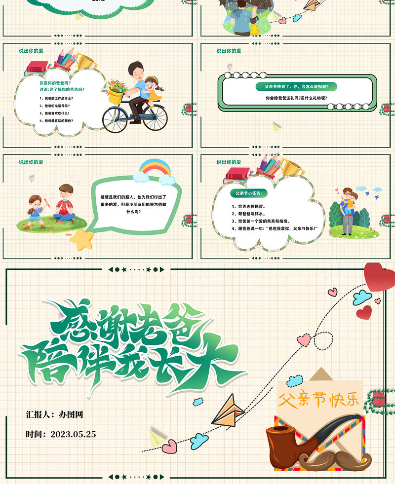 工圖網提供2023感謝老爸陪伴我長大PPT卡通風中小學生父親節主題班會課件模板下載供會員免費下載。更多精彩黨課PPT素材,盡在工圖網。
