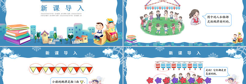 新課導入再來看看美麗的小花吧!燈籠和小朋友的排列也有類似的規律嗎?是的!它們都是重復排列的。