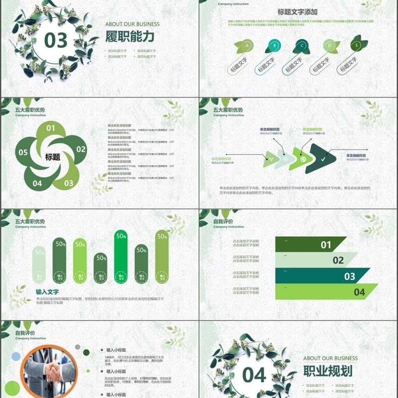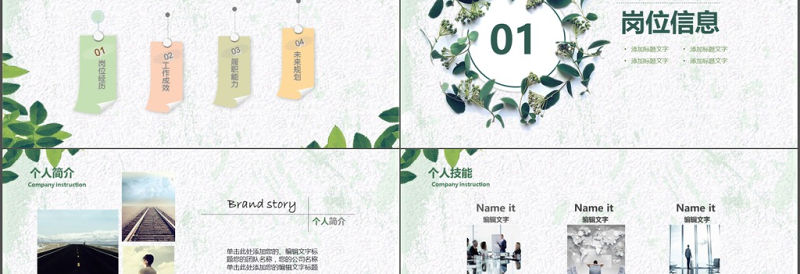 首頁 > PPT模板 > 競選|競聘PPT模板 > 水彩小清新綠葉個人簡歷述職報告.PPTX 【圖片、文字、動畫均可編輯】