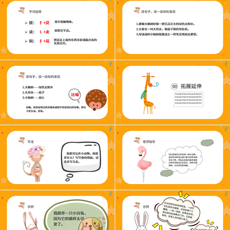 老師指導可以選擇自己喜歡的一種小動物,通過查資料或上網了解它的外形和生活習性,然后從這兩方面來講述它的可愛和自己喜歡它、想養它的理由,注意語句要通順。