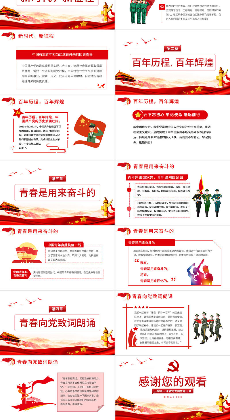 青春向黨 奮斗強國 PPT 紅色 大氣 新時代 新征程 新青年 愛黨 愛國 主題班會 致頌詞 黨課 課件 Array