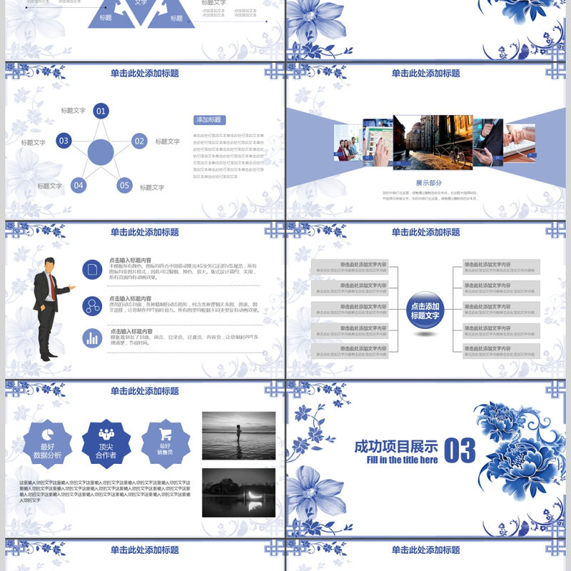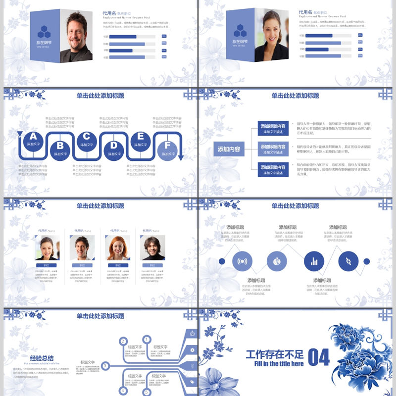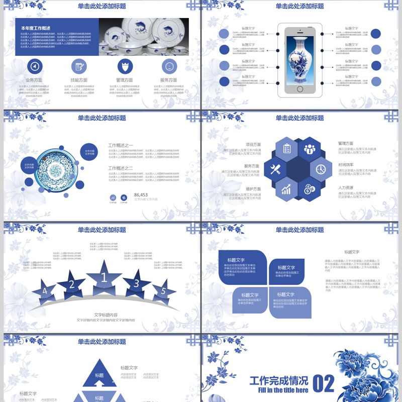 2017藍色簡約年度工作總結通用PPT模板包含