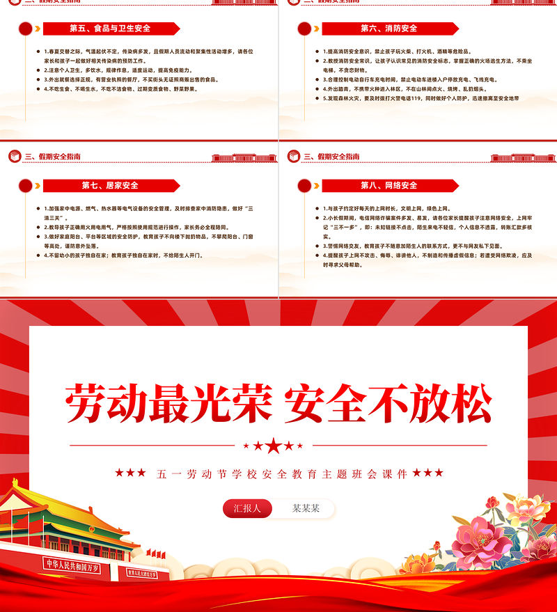 勞動最光榮安全不放松PPT清新簡潔五一勞動節學校安全教育主題班會課件 Array