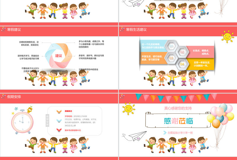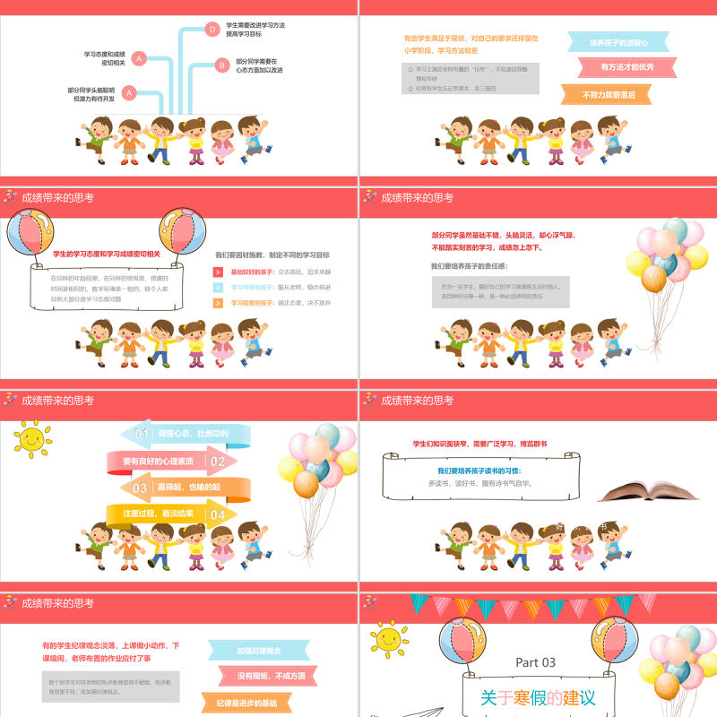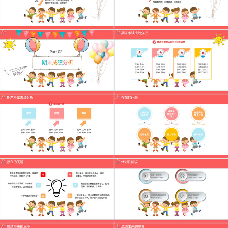 2018通用小學初中可愛卡通手繪多彩期末家長會PPT模版