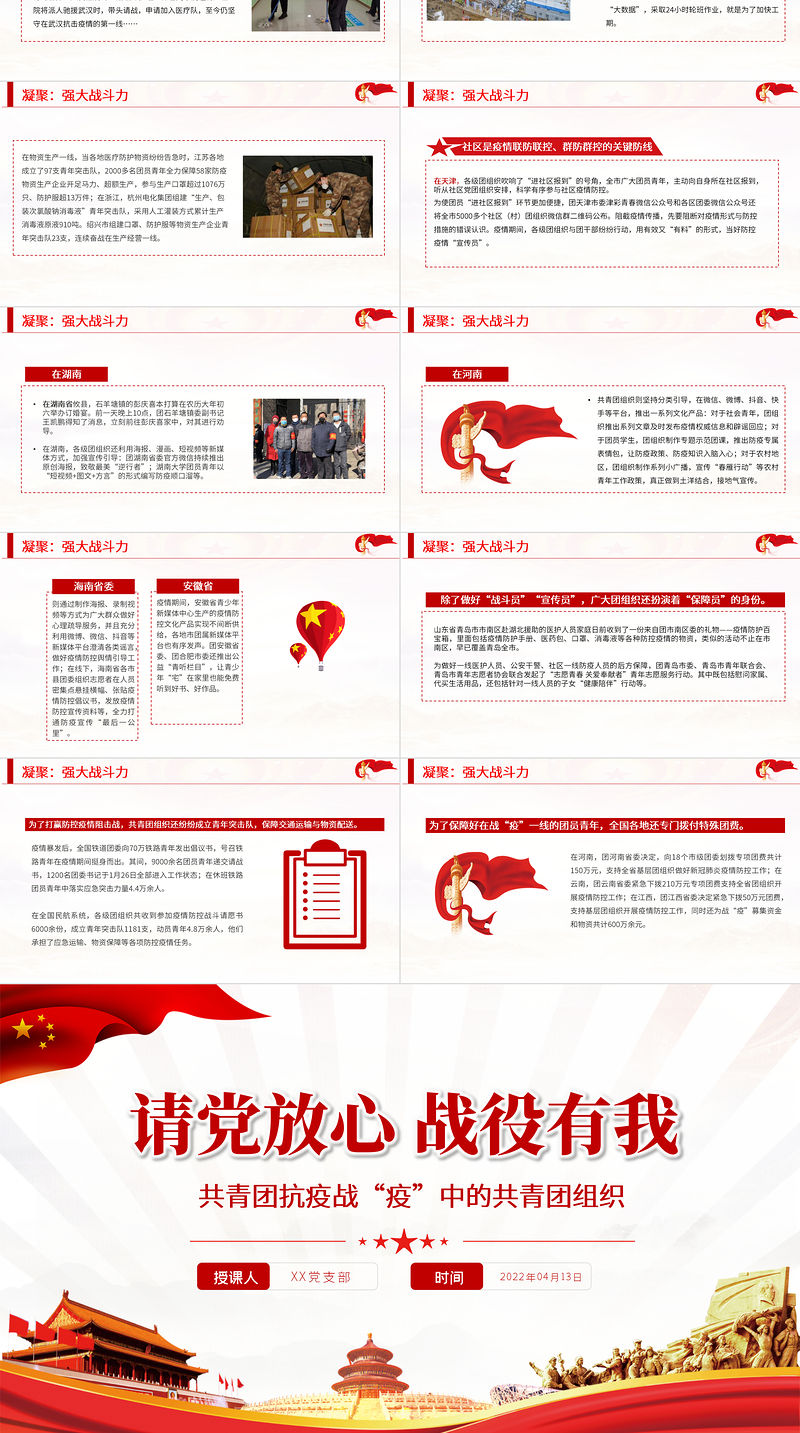 請黨放心戰疫有我PPT紅色黨政風戰疫中的共青團組織團委團支部團課課件