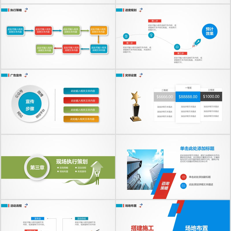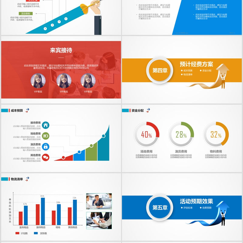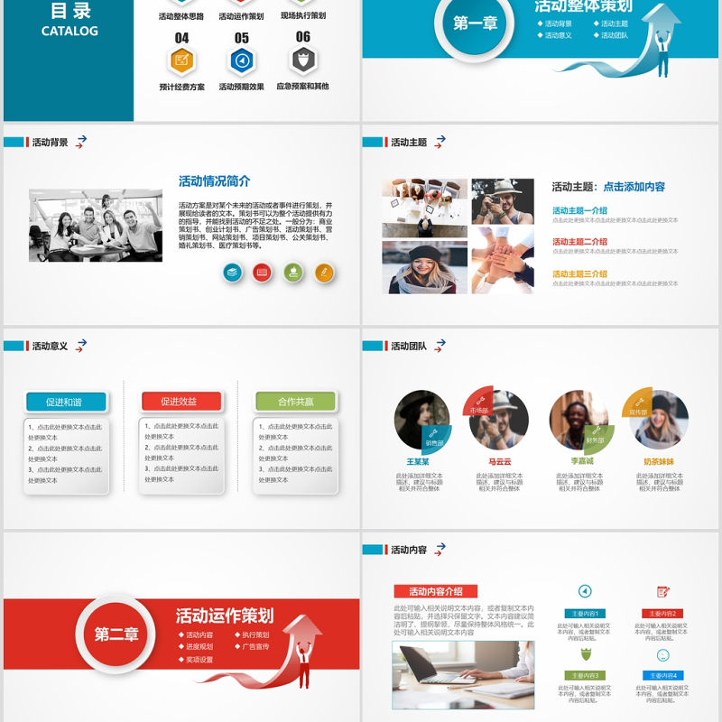 框架完整全面紅藍色大氣活動策劃營銷策劃方案策劃PPT模板包含