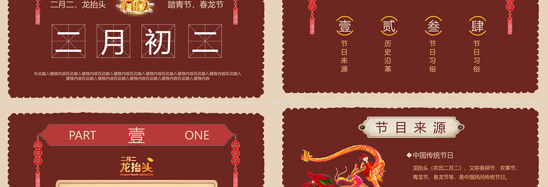 中國春節(jié)傳統(tǒng)習(xí)俗二月二龍?zhí)ь^PPT課件下載