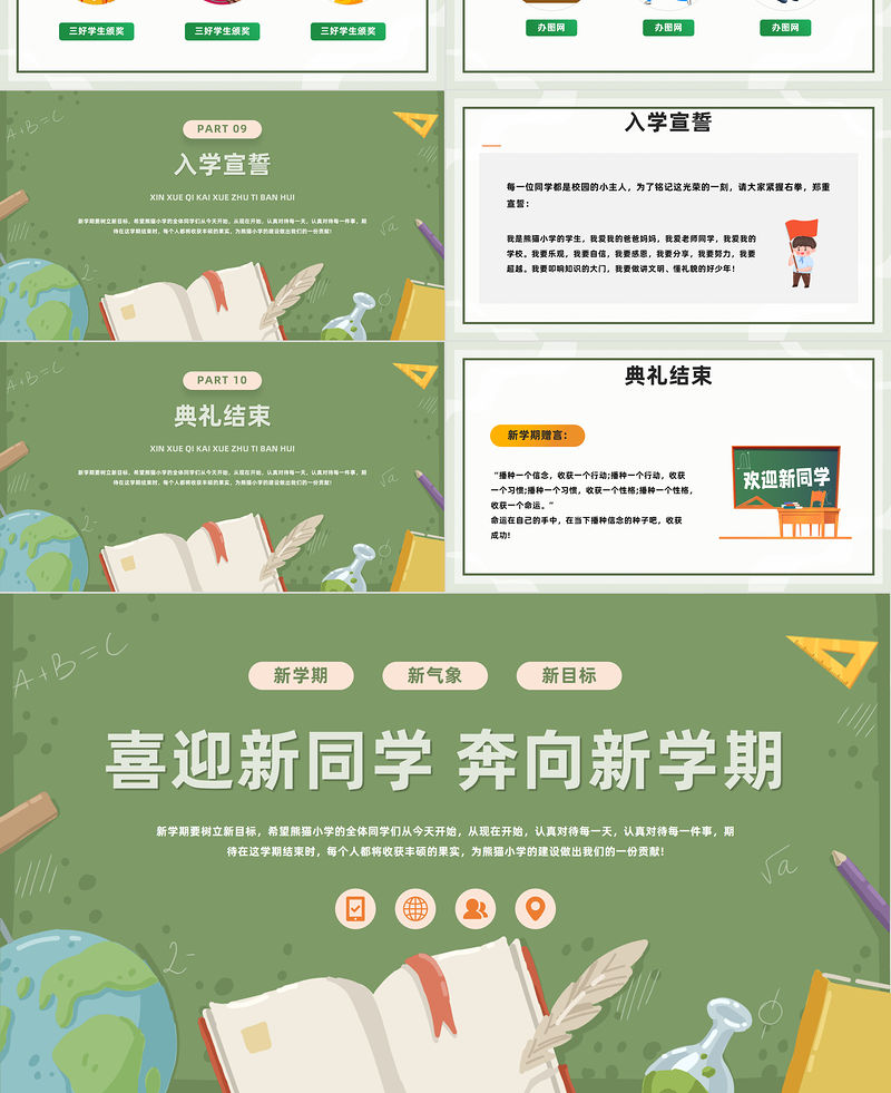 喜迎新同學 奔向新學期新學期要樹立新目標,希望熊貓小學的全體同學們從今天開始,從現在開始,認真對待每一天,認真對待每一件事,期待在這學期結束時,每個人都將收獲豐碩的果實,為熊貓小學的建設做出我們的一份貢獻!