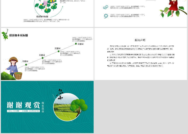 傳統文化二十四節氣之谷雨主題班會PPT模板