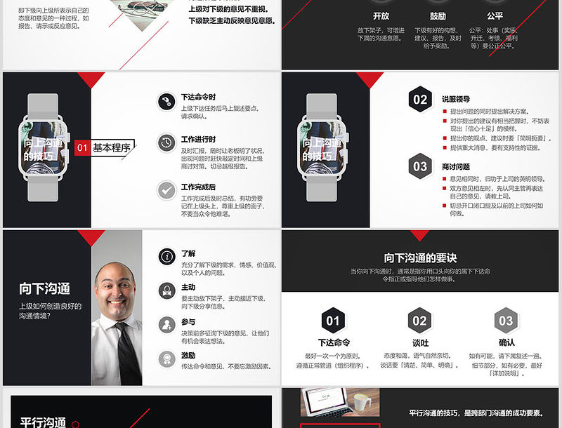 平行溝通的技巧平行溝通的技巧,是跨部門溝通的成功要素。同事間要多注意禮節(jié)和人際關(guān)系。平時(shí)要建立起互助、團(tuán)隊(duì)的良好默契。 和跨部門的高階溝通時(shí),先請(qǐng)我們的同階主管先打電話或拜會(huì)一下。就事論事,盡量協(xié)商出對(duì)彼此有利的結(jié)果。有爭(zhēng)議時(shí),避免爭(zhēng)吵,可請(qǐng)上司出面協(xié)商調(diào)整。日常溝通中延遲符