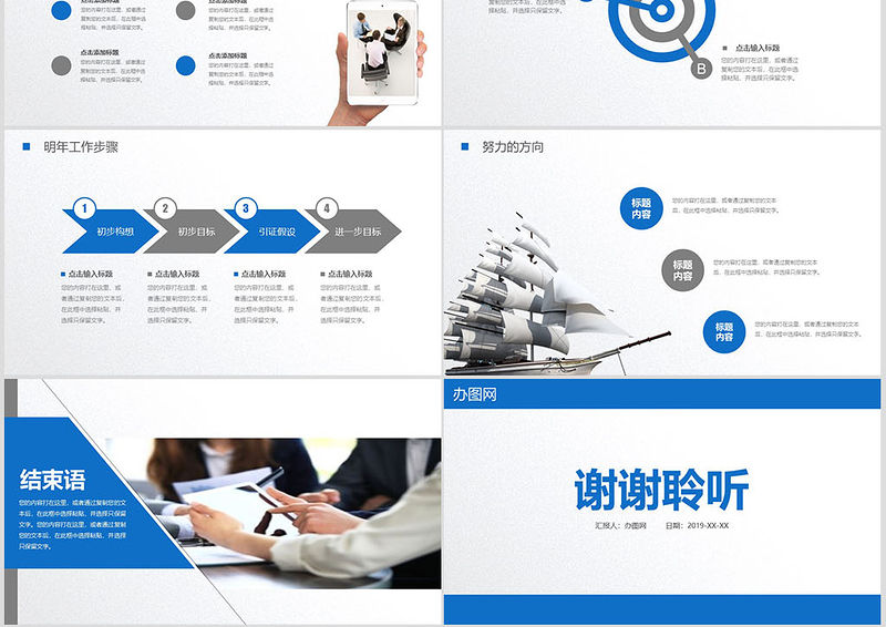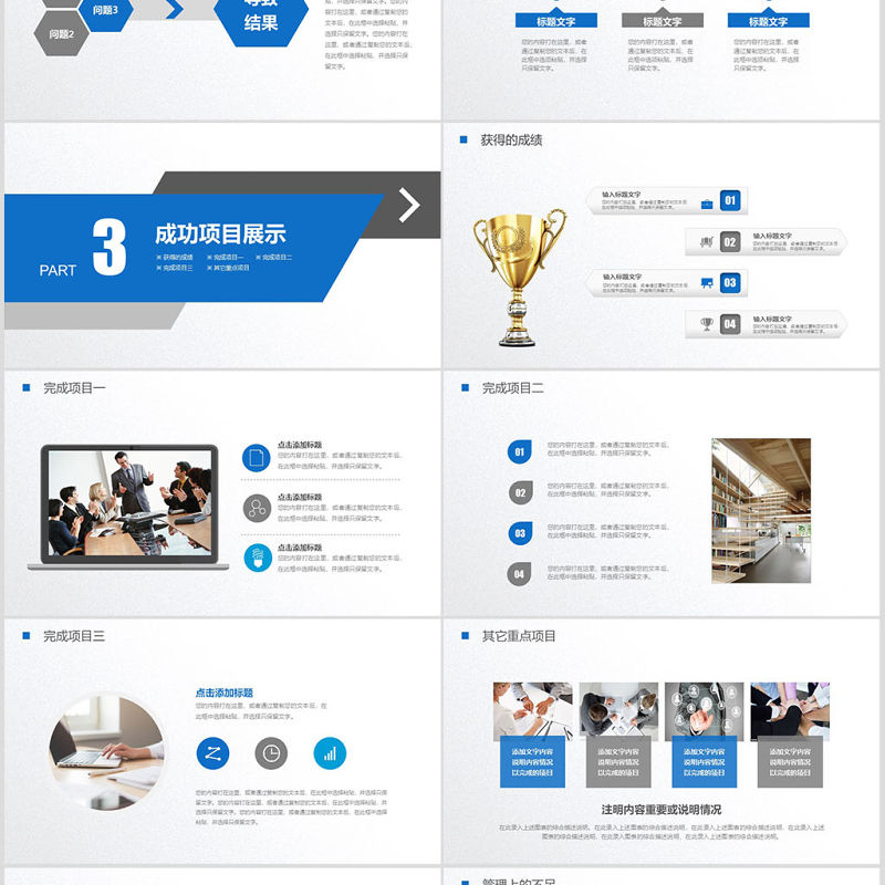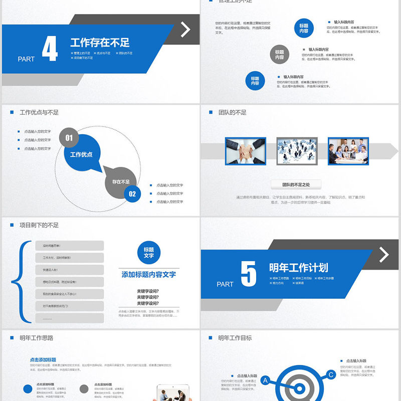 2024工作匯報PPT商務藍色簡約風年終總結工作總結PPT模板下載包含