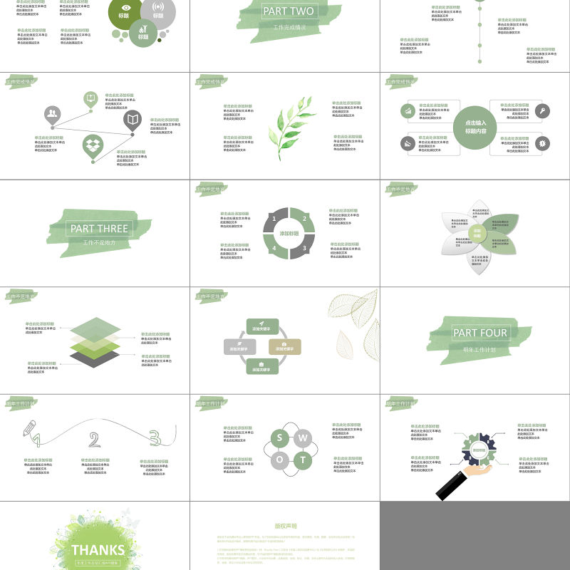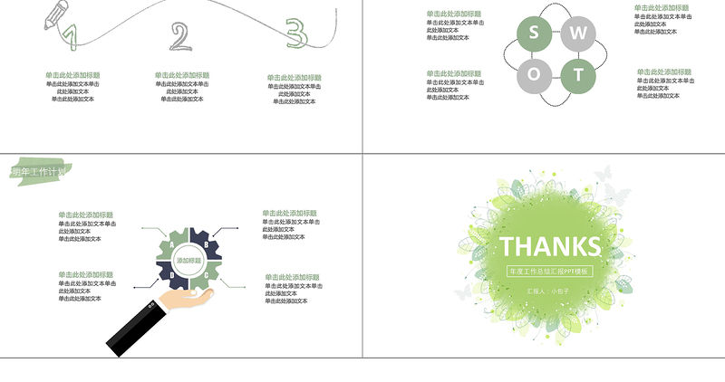2021淡雅小清新工作總結工作匯報PPT模板包含