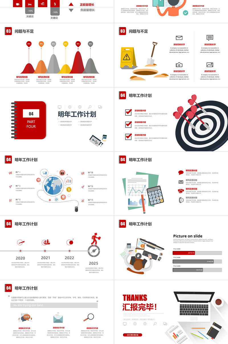 2023多彩扁平化工作匯報(bào)總結(jié)PPT模板 Array