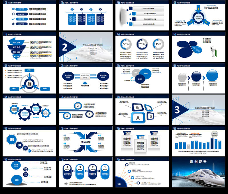 藍色動車高鐵火車鐵路發展地鐵ppt Array