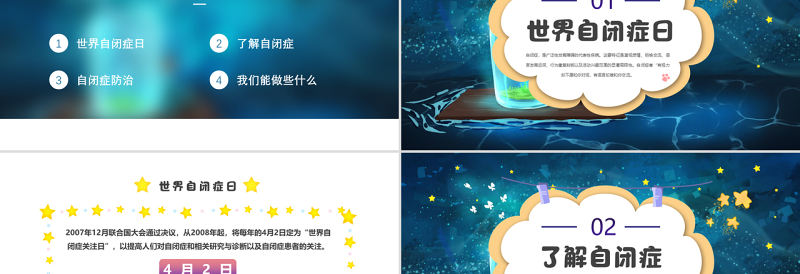 2022關注星星的孩子PPT卡通風關愛自閉癥患者創造健康世界主題班會課件模板