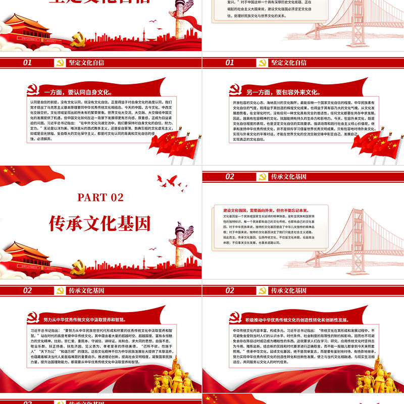 目錄CONTENTS第一部分第二部分第三部分堅定文化自信傳承文化基因推動文化創新第四部分維護文化安全第五部分擴大中國文化影響力