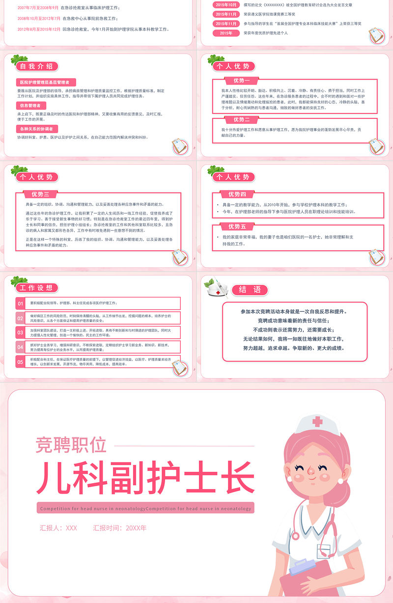 2022兒科副護士長競聘PPT粉色簡約競聘必備PPT