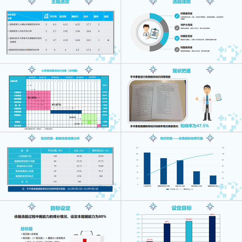 選題理由對患者而言為患者提供全面、全程、優(yōu)質(zhì)的護(hù)理服務(wù),減輕患者痛苦,促進(jìn)患者早日康復(fù)對護(hù)士而言提高綜合素質(zhì),減輕工作壓力,提升自我成就感對病區(qū)而言增強(qiáng)團(tuán)隊(duì)凝聚力,改善工作效率和品質(zhì),提高病區(qū)整體形象對醫(yī)院而言提高患者滿意度,增加社會(huì)效應(yīng),提升醫(yī)院的整