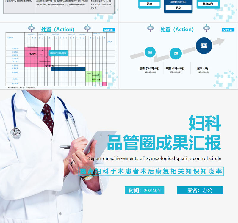 婦科品管圈成果匯報(bào)提高婦科手術(shù)患者術(shù)后康復(fù)相關(guān)知識(shí)知曉率 Report on achievements of gynecological quality control circle圈名:辦公時(shí)間:2022.05