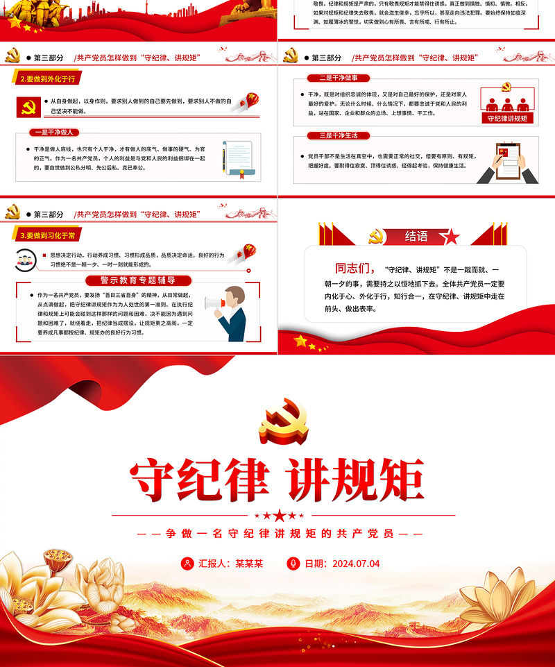 工圖網提供守紀律講規矩PPT大氣黨政風爭做一名守紀律講規矩的共產黨員專題課件下載供會員免費下載。更多精彩黨課PPT素材,盡在工圖網。