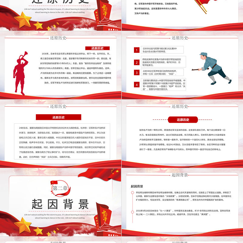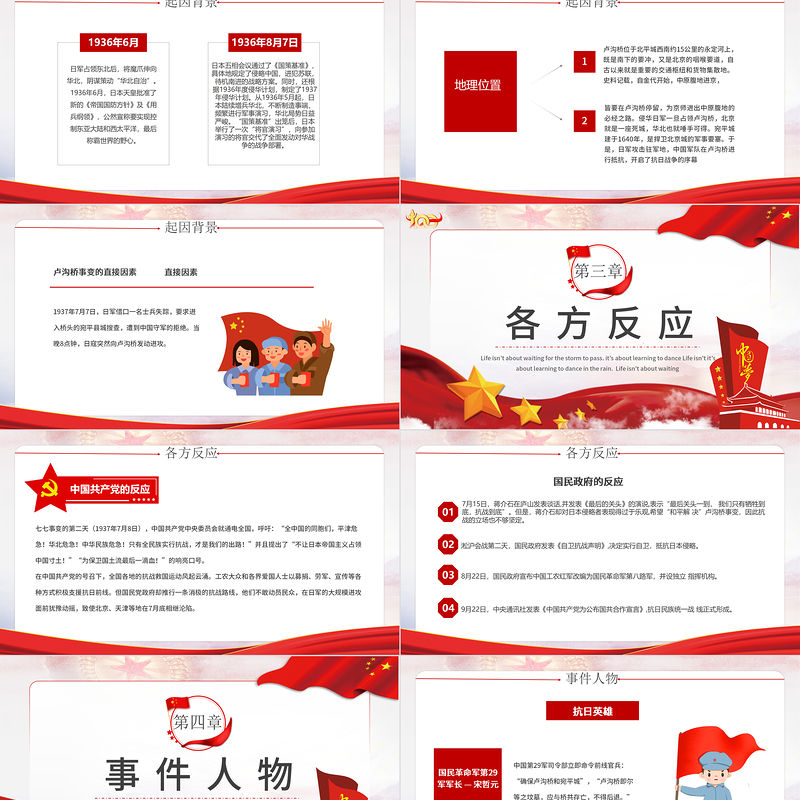 2021 紀念盧溝橋事變 PPT 學習黨史 專題黨課 課件 模板 Array
