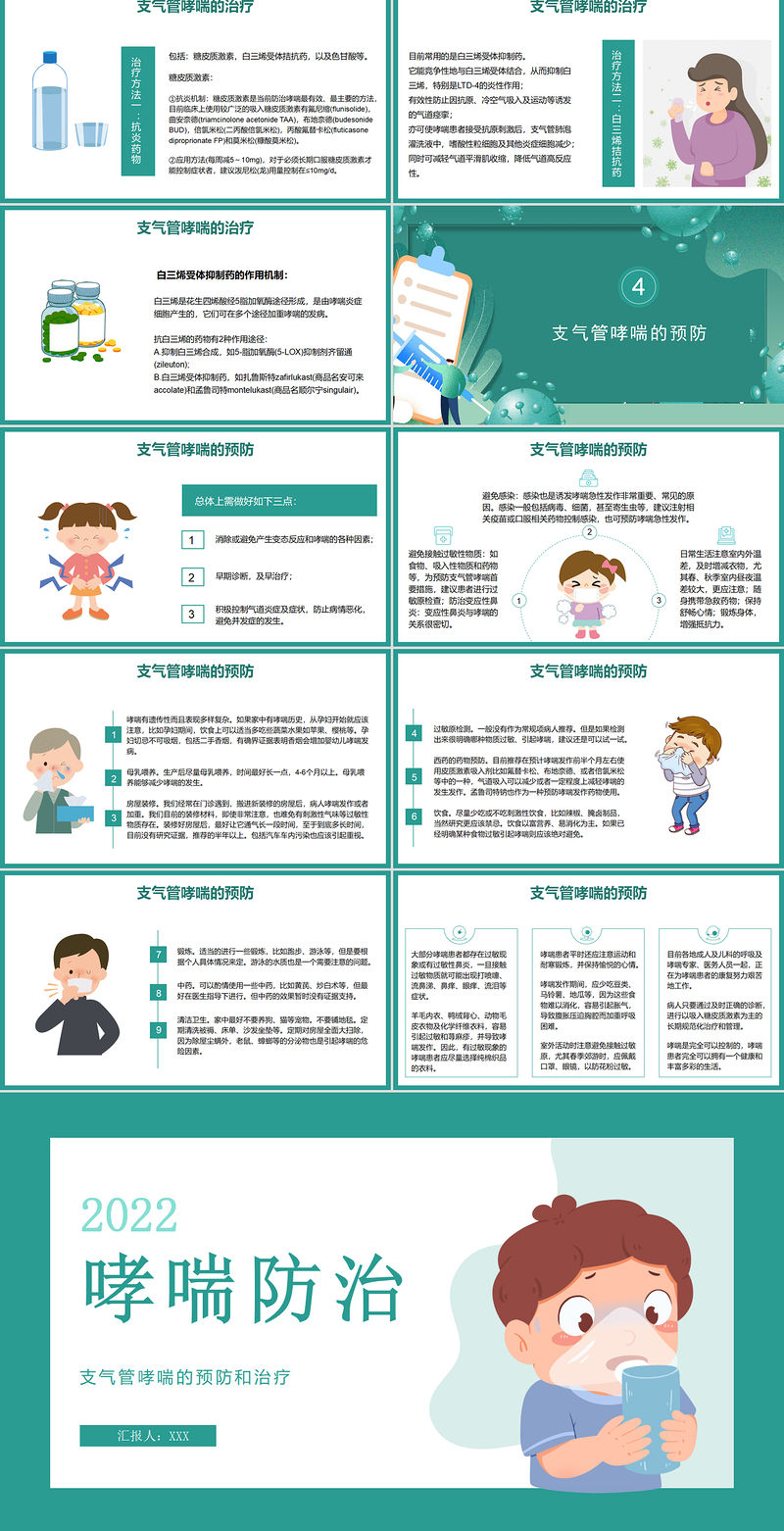 2022支氣管哮喘的預防和治療PPT清新醫療風醫療教學各種疾病醫理PPT模板 Array