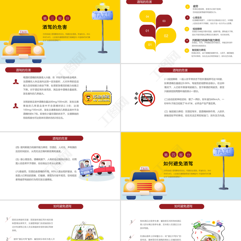 工圖網提供撞色清新卡通插畫拒絕酒駕交通安全在心中ppt供會員免費下載。更多精彩黨課PPT素材,盡在工圖網。