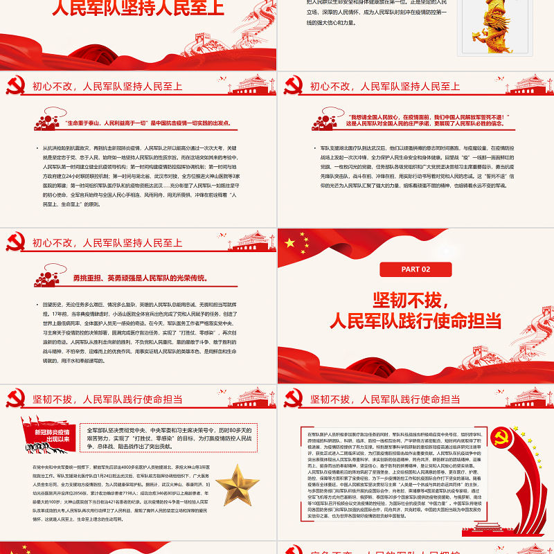 以人民為中心在戰(zhàn)“疫”中踐行人民軍隊(duì)根本宗旨PPT紅色簡(jiǎn)約風(fēng)黨員干部學(xué)習(xí)教育專題黨課課件模板 Array