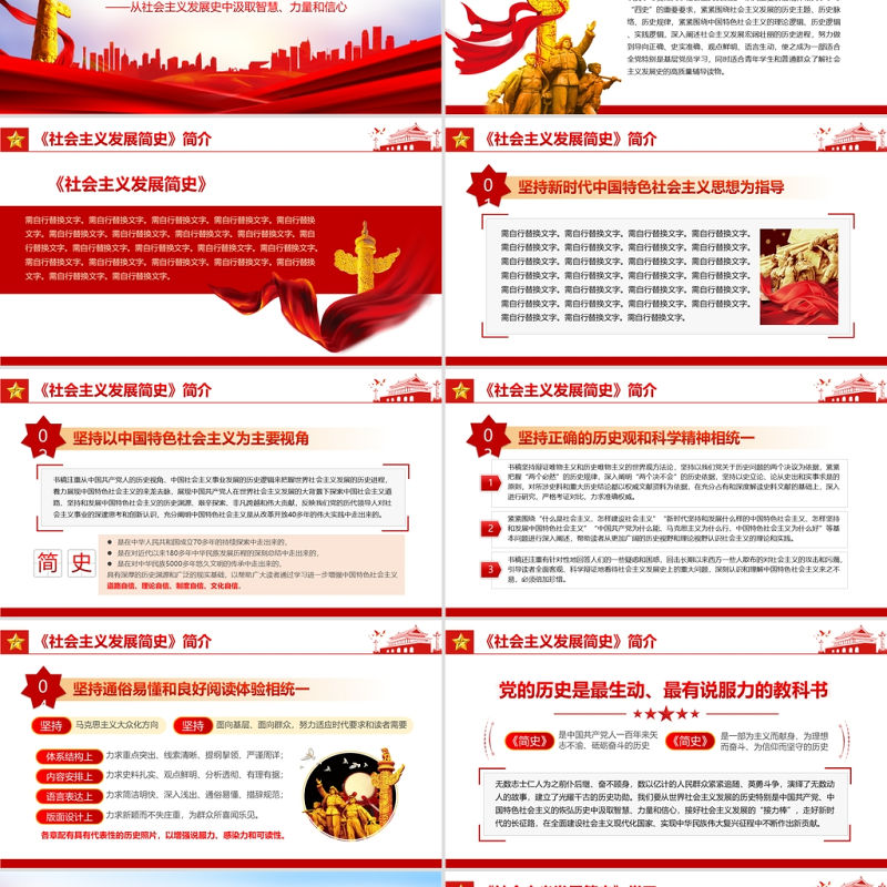 社會主義發展簡史PPT紅色莊嚴從社會主義發展史中汲取智慧力量和信心黨課課件 社會主義發展簡史 社會主義發展史 改革開放簡史 四史 中華人民共和國簡史 社會主義 中國共產黨黨史 黨史 新中國史 黨建 黨政 黨支部 簡史 黨史學習教育 微黨課 中國特色社會主義 以史為鑒 國史 愛國ppt Array