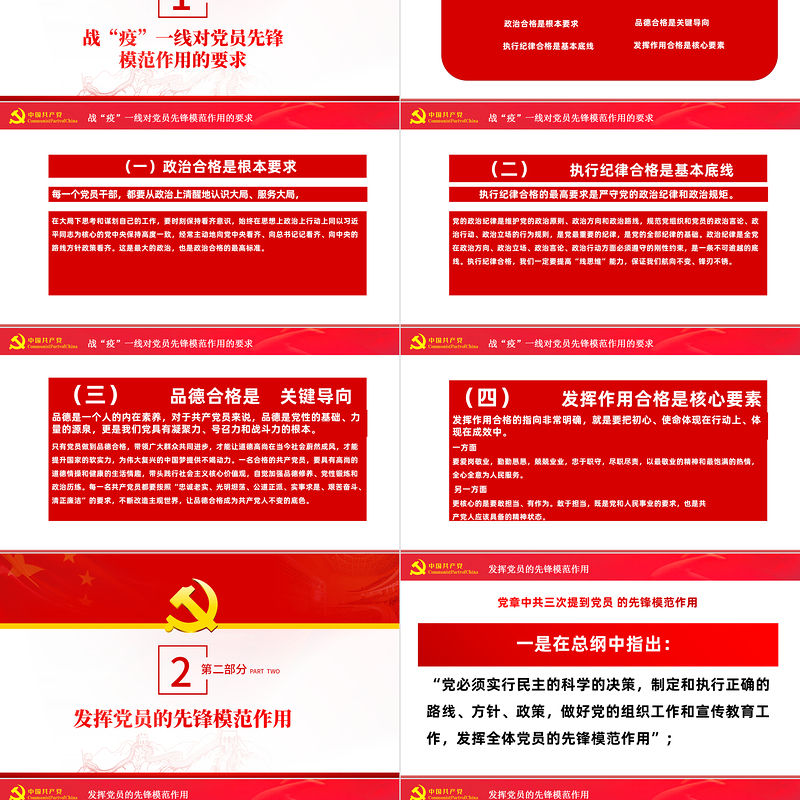 疫情防控黨課PPT紅色大氣風疫情防控發揮黨員先鋒模范作用專題黨課課件模板 Array