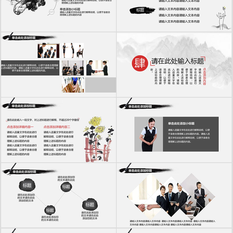 商務(wù)禮儀培訓(xùn)水墨中國(guó)風(fēng)PPT動(dòng)態(tài)通用模板 Array
