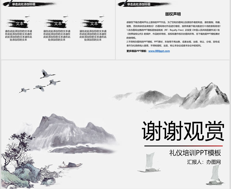 工圖網(wǎng)提供商務(wù)禮儀培訓(xùn)水墨中國(guó)風(fēng)PPT動(dòng)態(tài)通用模板供會(huì)員免費(fèi)下載。更多精彩黨課PPT素材,盡在工圖網(wǎng)。