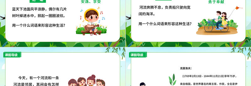 河流 河流奔騰不息,負責船只駛向寬闊的海洋。用一個什么詞語來形容這種生活?勇于奉獻