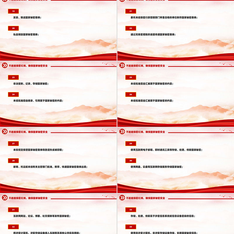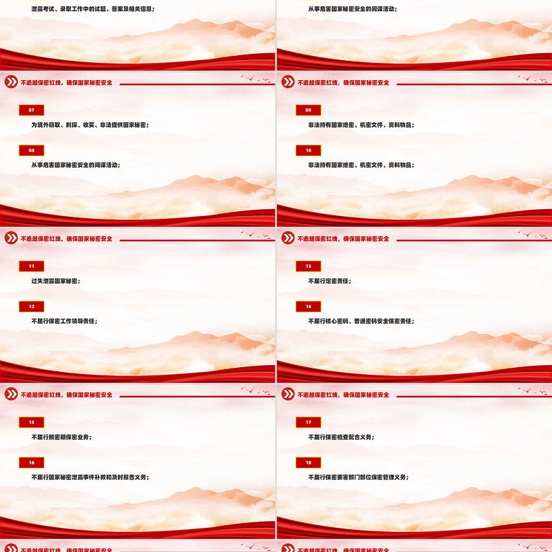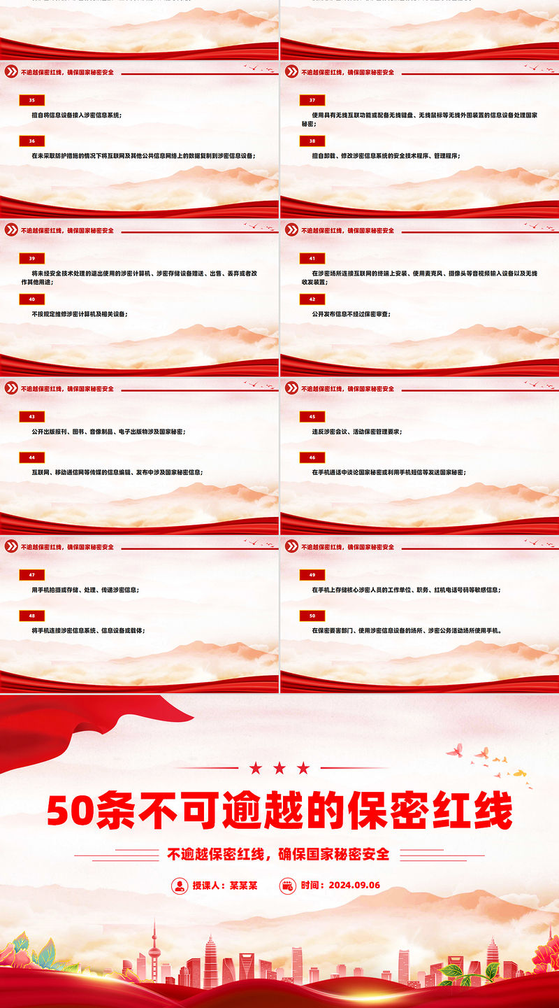 50條不可逾越的保密紅線PPT精美簡潔保密知識學習課件 Array